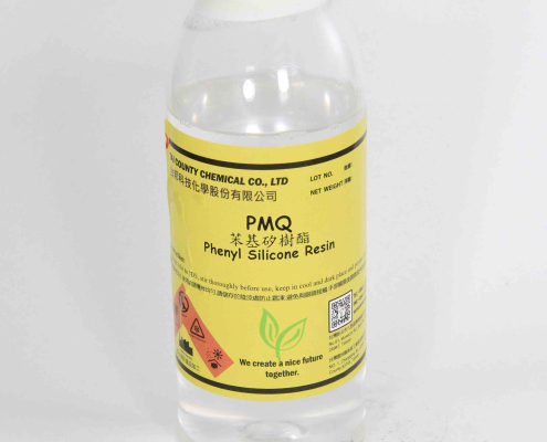 PMQ is a phenyl silicone resin formed through the co-hydrolytic condensation reaction of an organic silicone compound containing tetravalent siloxane segments (SiO4/2, Q) and an organic silicone compound containing monovalent siloxane segments (R3SiO1/2, M), resulting in a three-dimensional spherical structure.