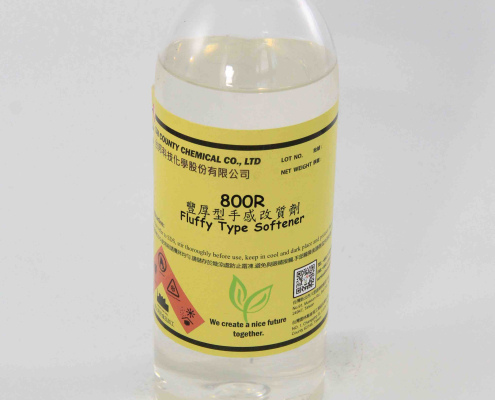 800R是利用聚合反應而製成Amino Silicone Resin,它可以讓不同纖維具有柔軟、 彈性、豐厚紮實感。尤其是在人造纖維布上, 給予極佳的表面平滑性。另外在純棉布料上 也賦予其柔軟及Q彈手感。