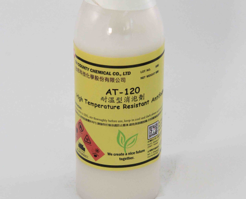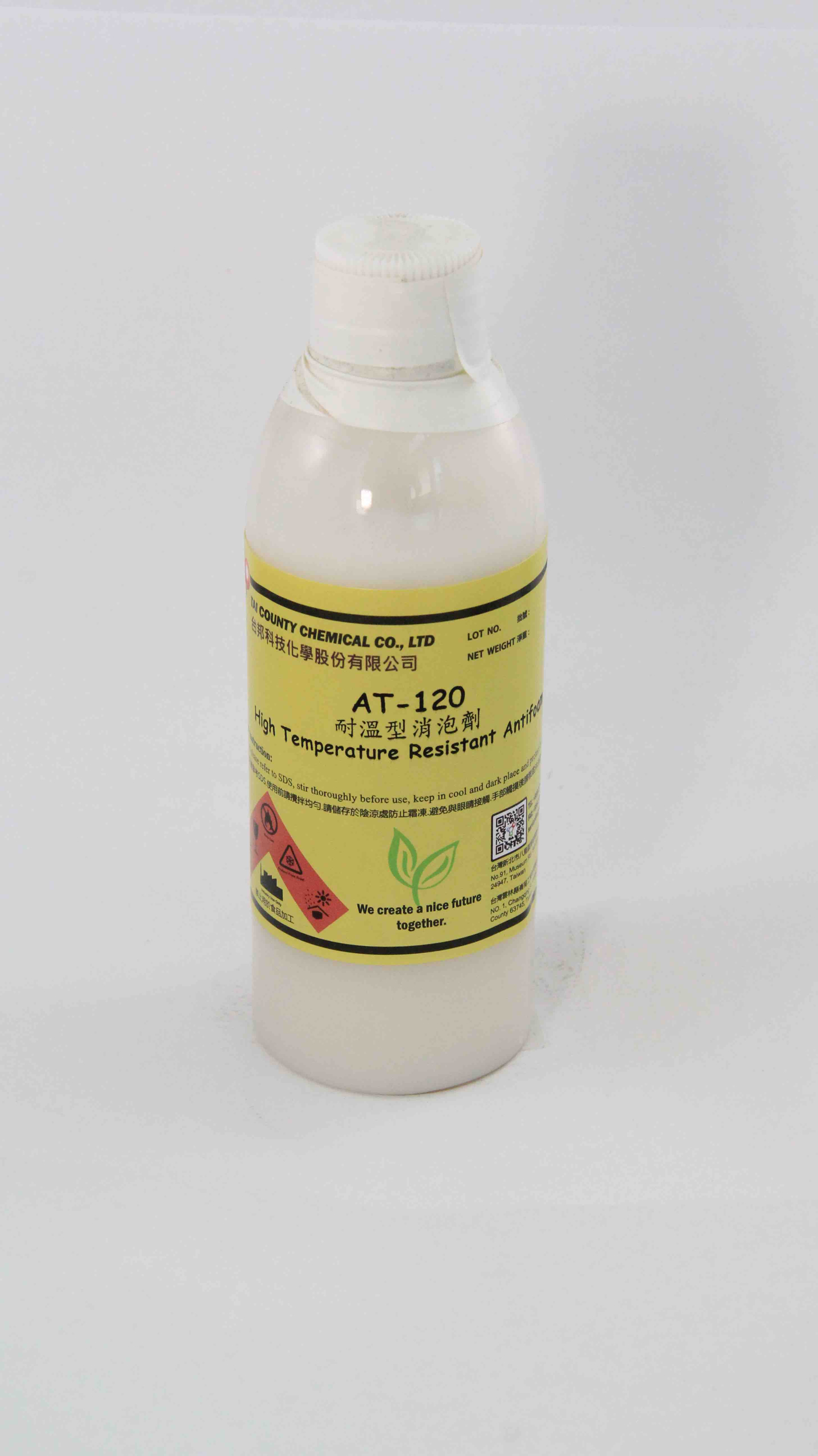 AT-120是經過研磨加工讓粒子變細,不易與其他化學藥劑相互反應,再加以研磨處理,其中分散性較一般優越,相對提高抑泡效果並提升在添加藥品分散均勻之安定度。